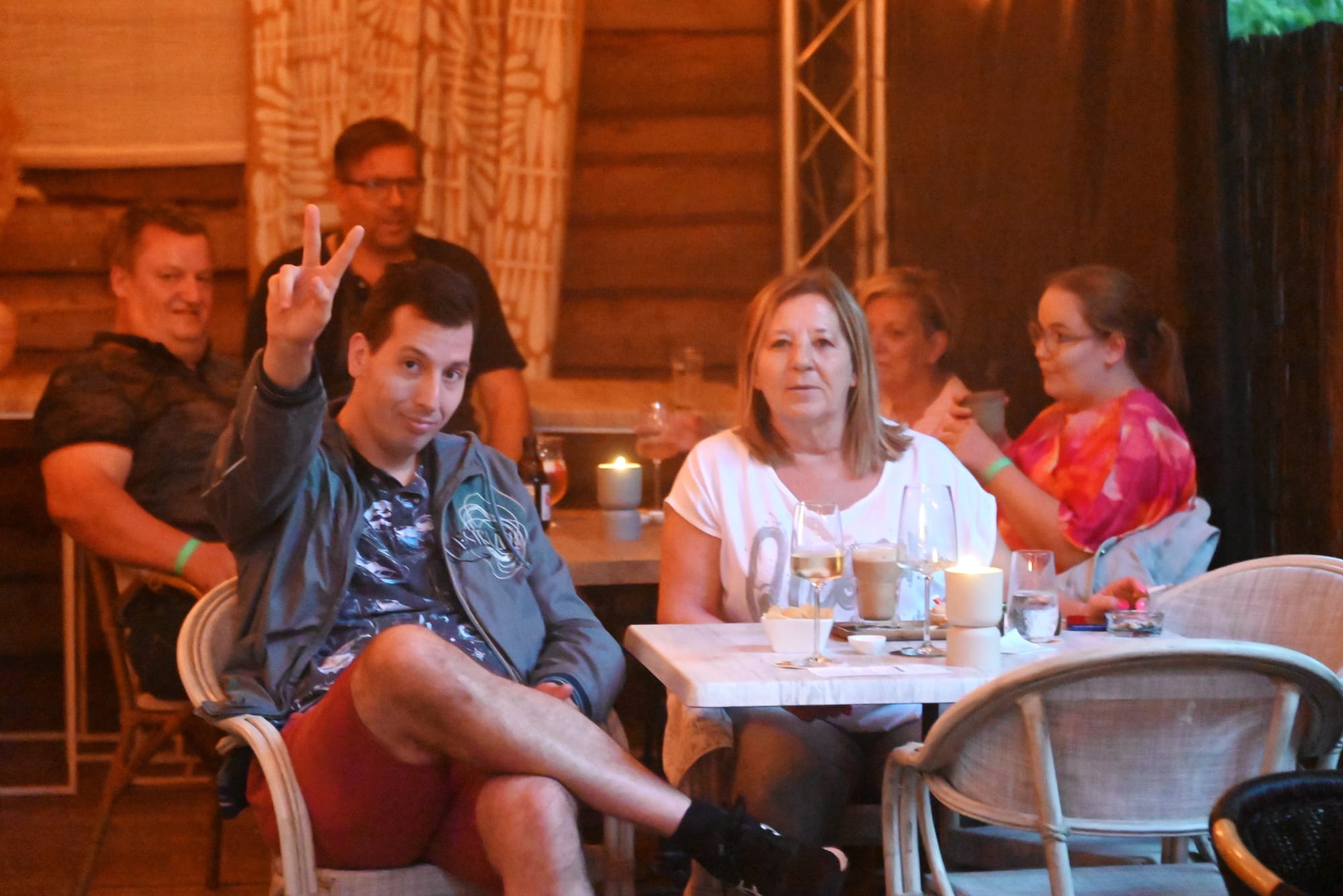 De weergoden waren hen gunstig gezind vanavond... want vanmiddag zag het er helemaal niet rooskleuring uit. Maar vanavond was het dan toch geweldig goed weer, en kon je bij Vill'Artistiek terecht voor de viering van hun 4-jarig bestaan. Voor de muzikale noot zorgden Davide Cavalieri en Stef en dat zat hélemaal goed. Veel rockmuziek uit de jaren 70 tot 90, en dit alles perfect gezongen...