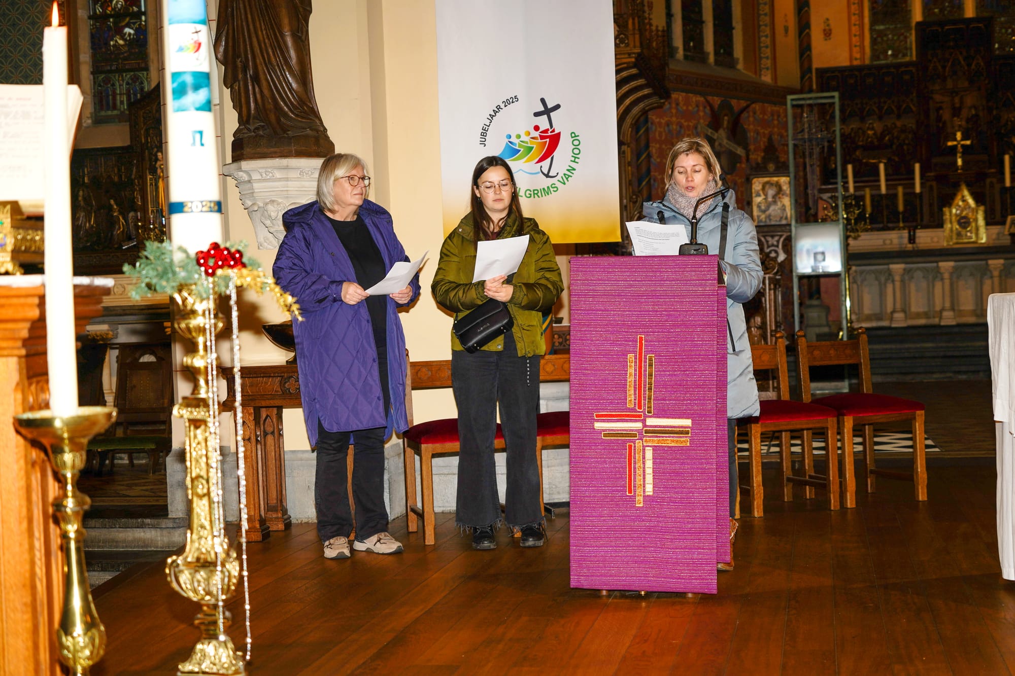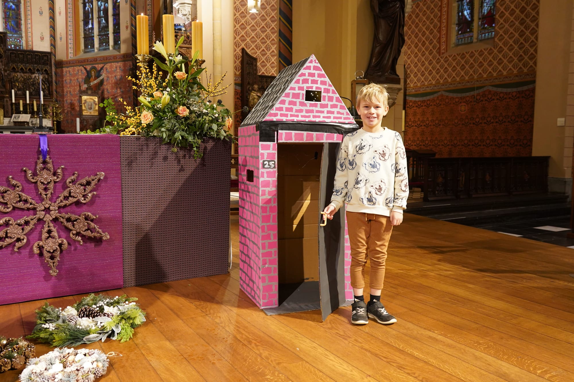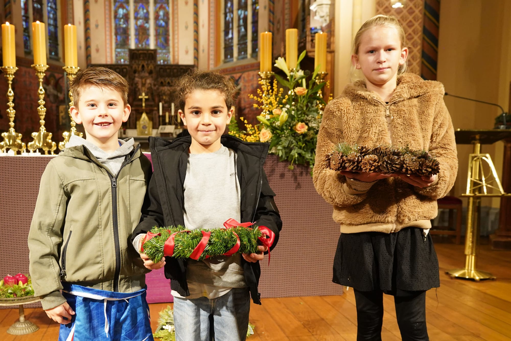 Samen met alle leerlingen en leerkrachten vierden ze in de kerk de inzegening van de adventskransen van alle klassen. De pastoor was aanwezig om dit moment van bezinning te leiden.