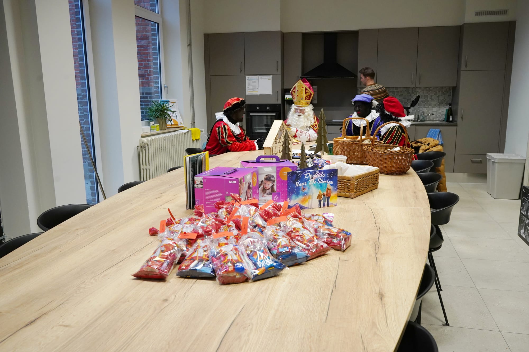 Eerst was er koffie en taart: een klassieker die meteen voor sfeer zorgt. Daana kwam ook de Sint nog langs met een zak snoep voor de vrijwilligers van de school – en dat gaf het feest een extra feestelijke toets. En ook kreeg iedereen nog speculoos van de stad: een typisch Belgisch gebaar dat perfect past bij de tijd van het jaar.