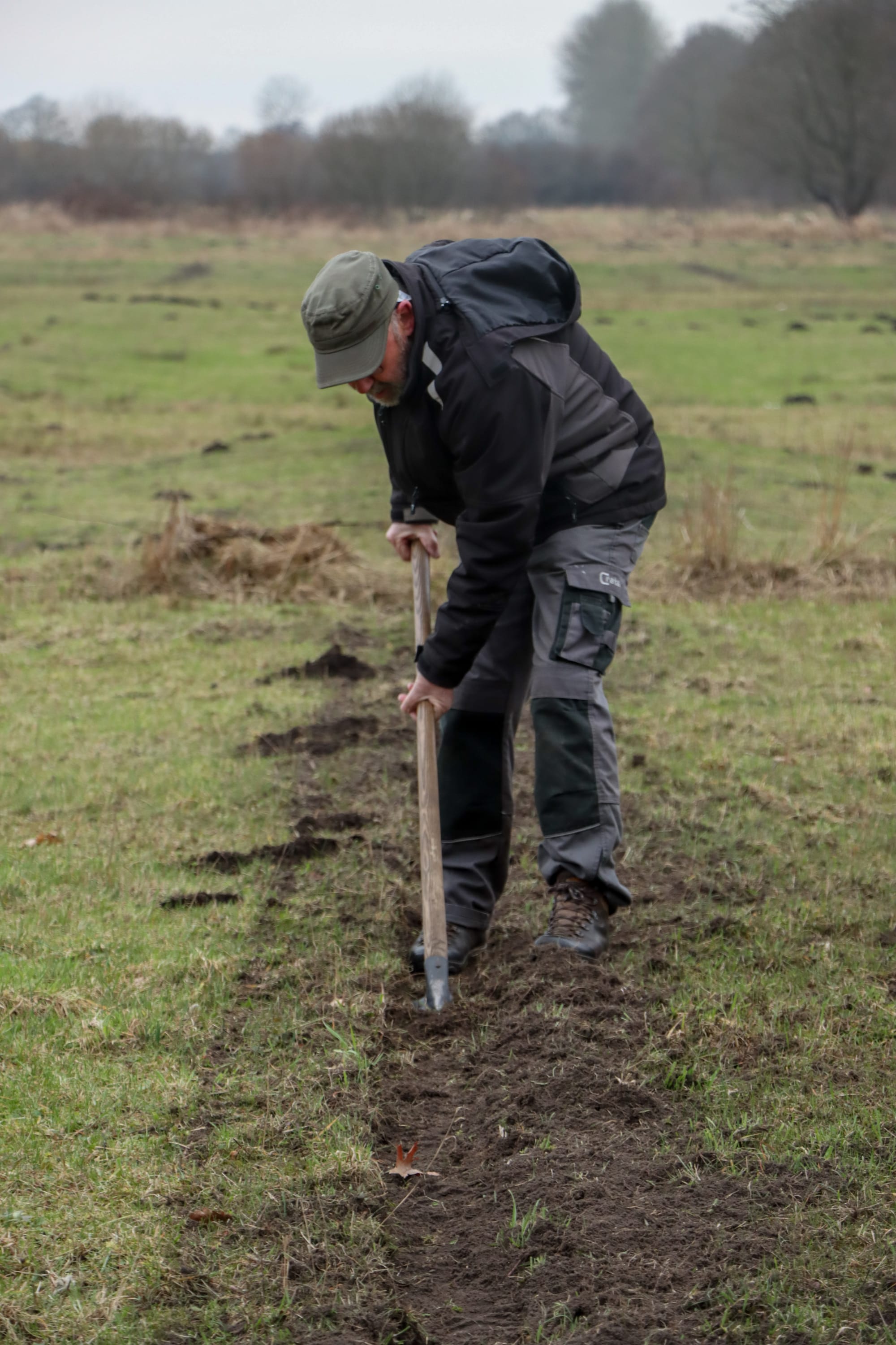 Daarnaast werden ook verschillende greppels hersteld. Door erosie of betreding kunnen de randen verzakken, waardoor het water zijn traject niet correct volgt. Door het zorgvuldig herstellen van deze structuren wordt verzekerd dat het water netjes via de juiste banen over de bedden wordt verdeeld.