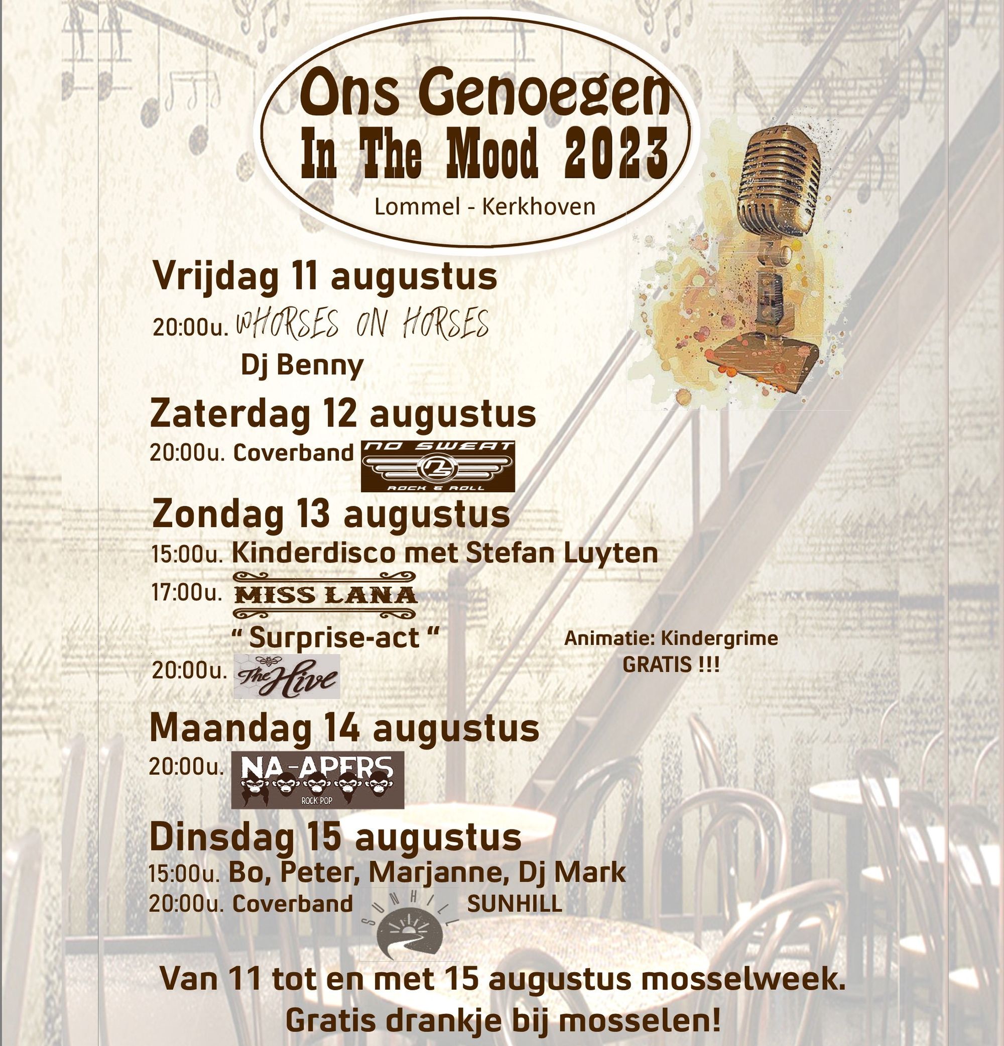 - Za 12/8: Optreden 'No sweat' - Ons Genoegen Kerkhoven – 20.00 uur