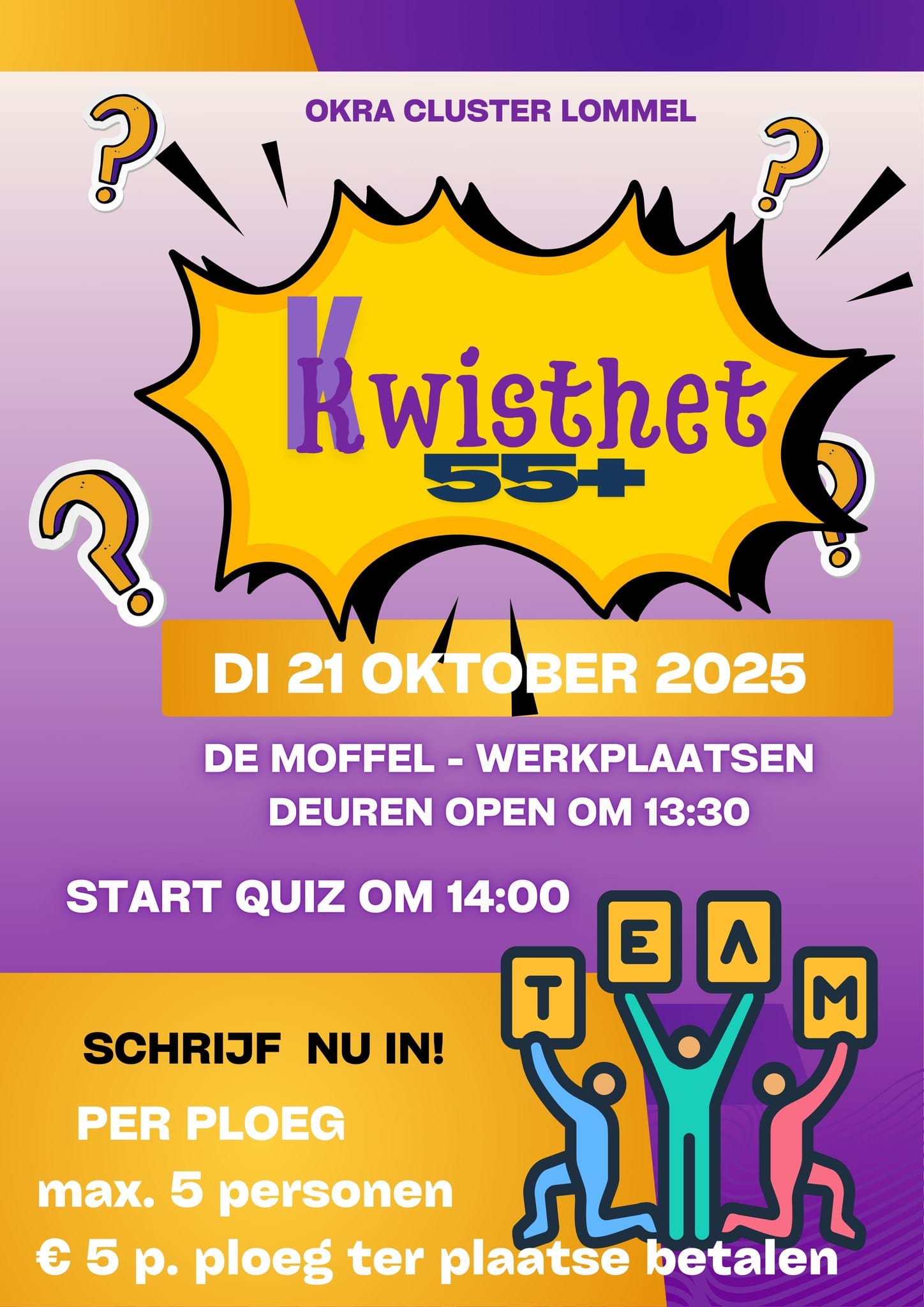 - Di 21/10: Kwist het 55+ - De Moffel 14.00 uur - quiz voor senioren INFO