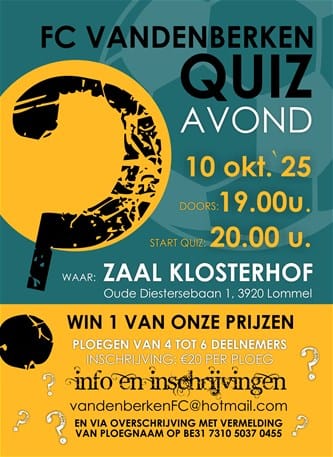 - Vr 10/10: FC Vandenberken Quiz - Klosterhof Kattenbos - 20.00 uur INFO