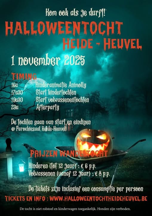 - Za 1/11: Halloweentocht Heide-Heuvel - 16/17.30/19.30 uur INFO