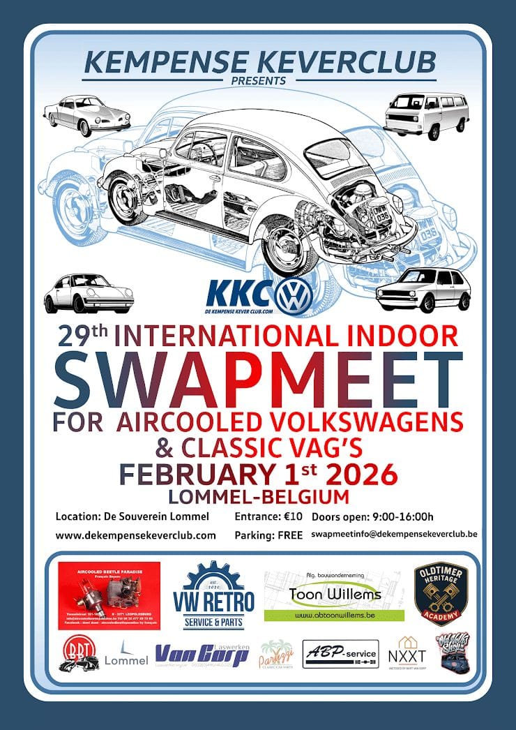 - Zo 1/02: Int. Swapmeet aircooled VW's en VAG's - De Soeverein - 9 tot 16 uur INFO
