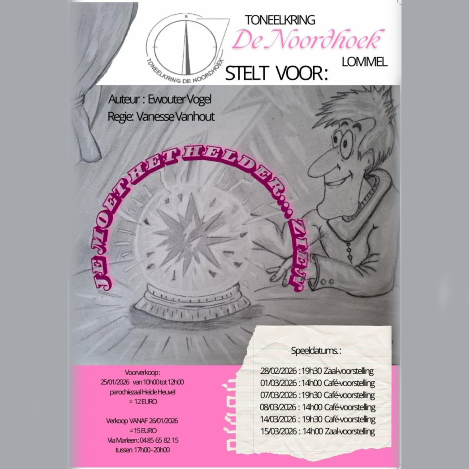 - Za 28/02: Toneelvoorstelling De Noordhoek - Parochiezaal Heide-Heuvel 20.00 uur (ook op 1, 7, 8, 14 en 15 maart) INFO