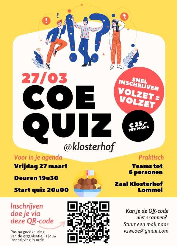 - Vr 27/03: Coe Quiz - Klosterhof - 20.00 uur
