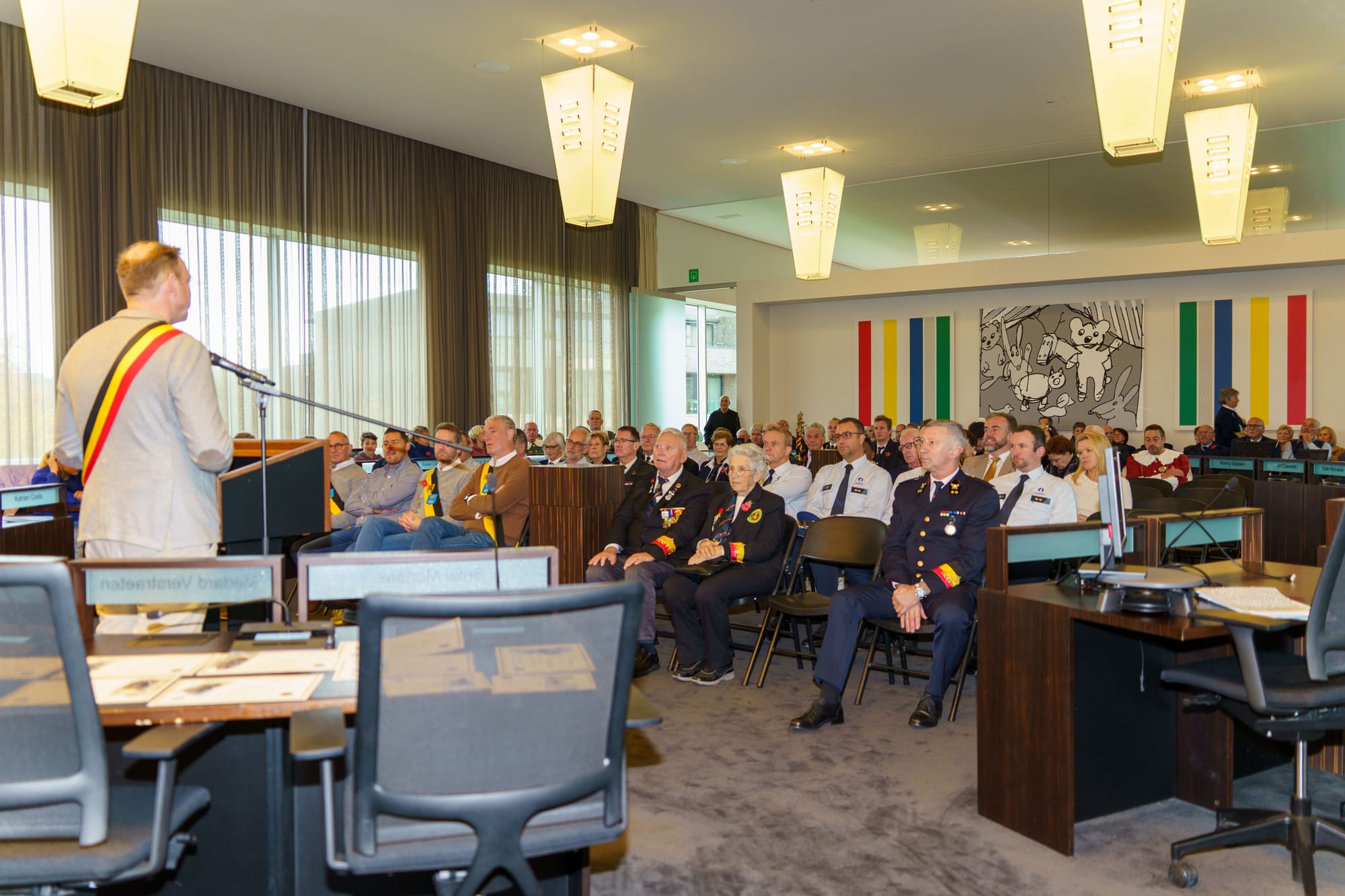 Het einde van deze herdenking vond plaats in het Huis van de Stad met een receptie én er werden ook nog meerdere personen in de bloemetjes gezet.