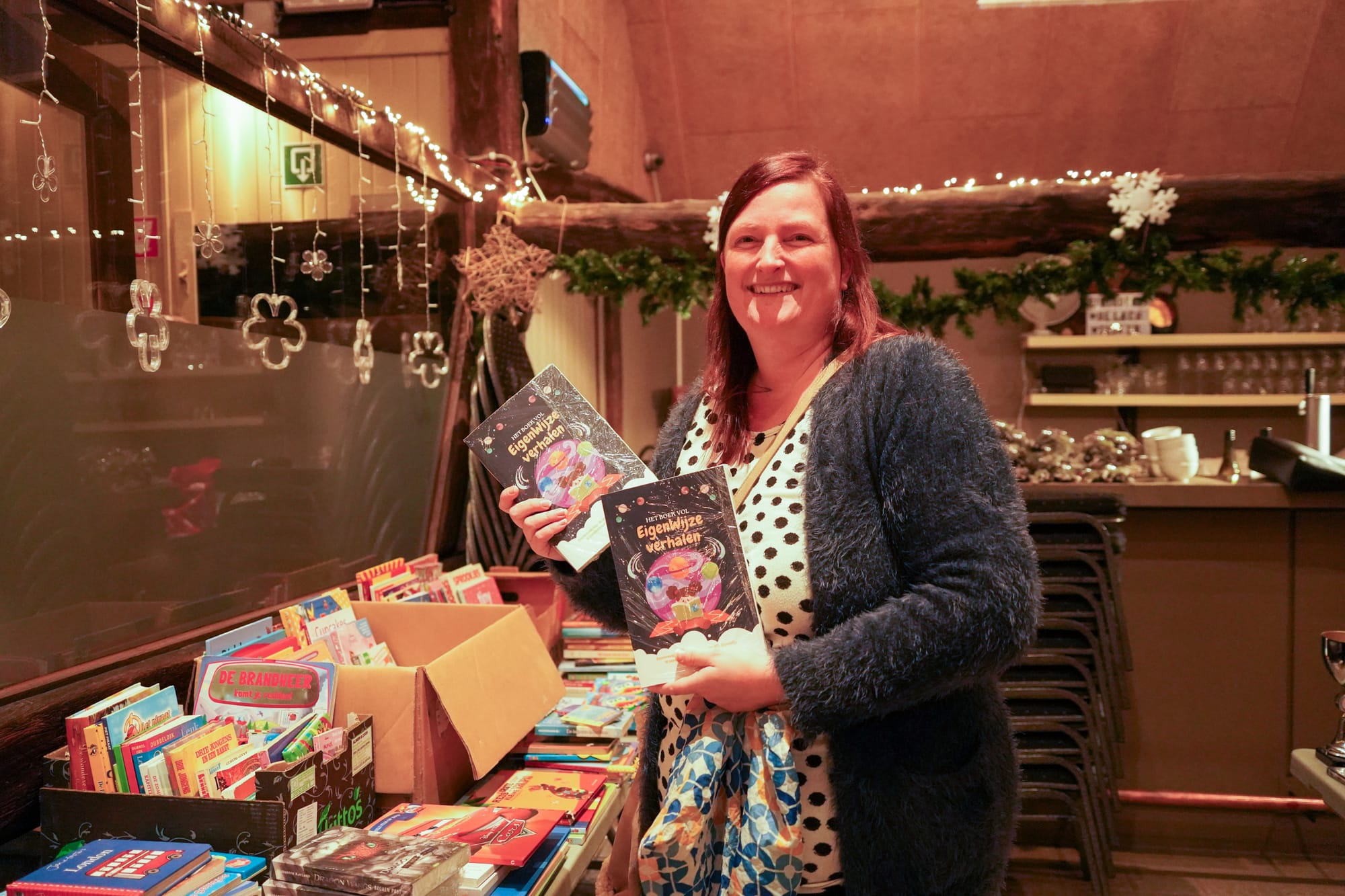 Ze mogen hiervoor de schuur gebruiken van de eigenaar van de Groote Hoef. Er kwam vandaag zelfs een schrijfster opdagen, Elizabeth Kayland, om boeken te doneren die ze geschreven heeft samen met kinderen van school XCL Eigenwijs.