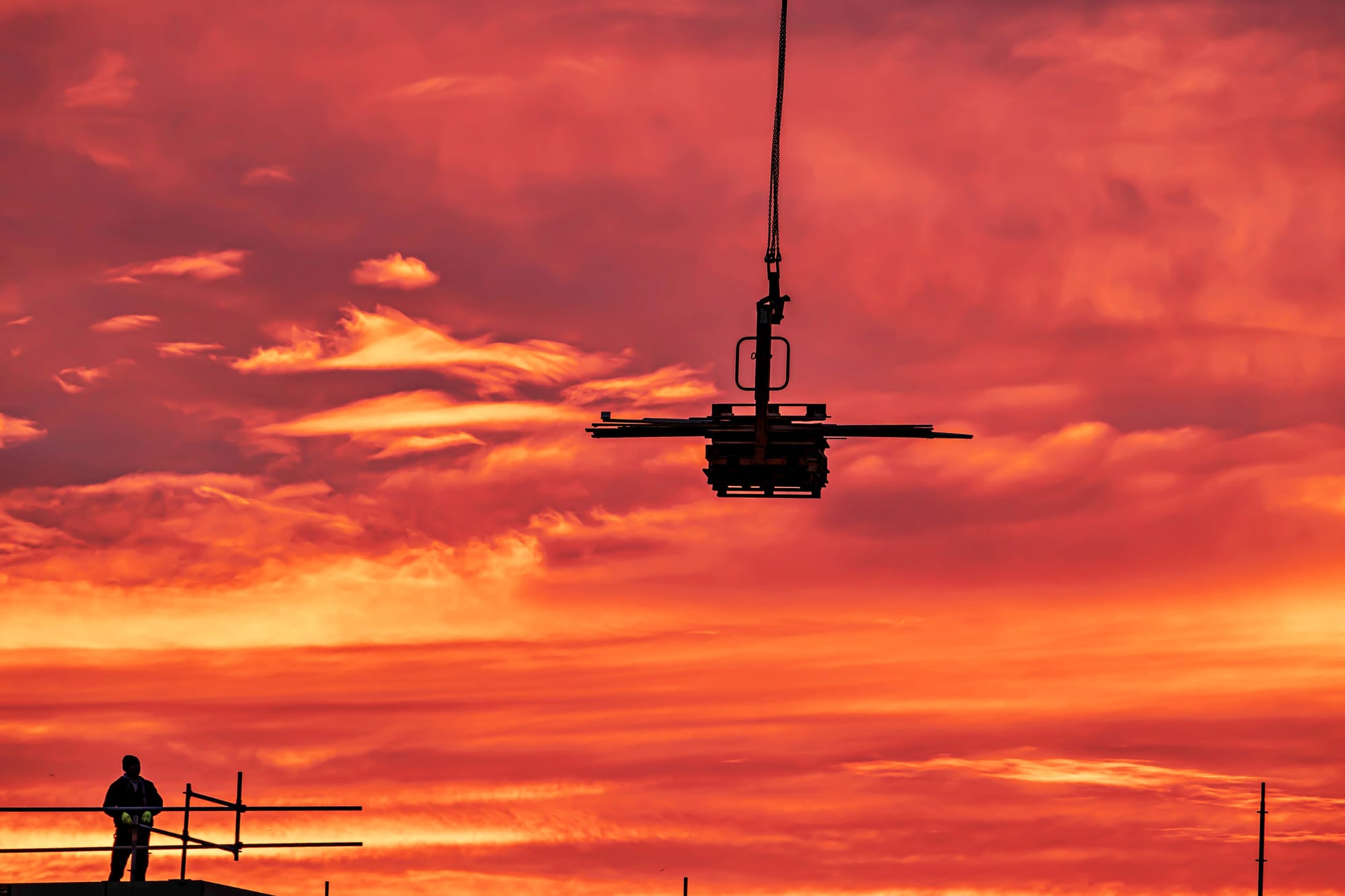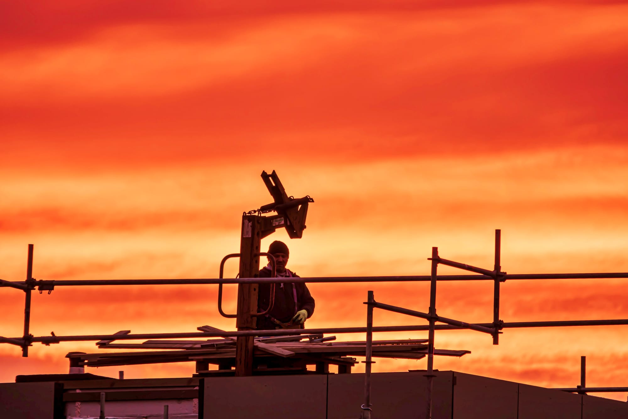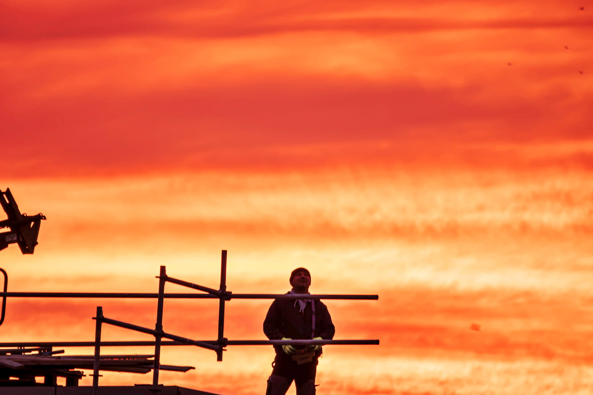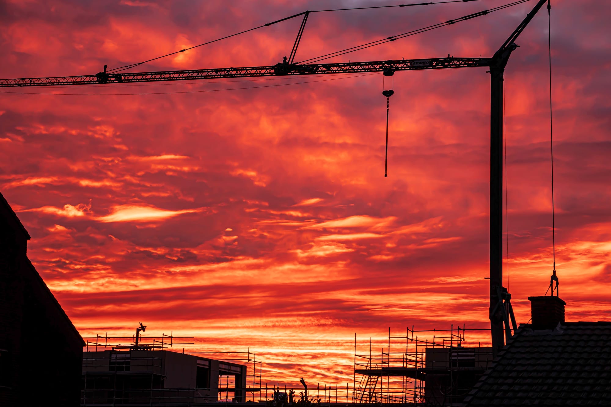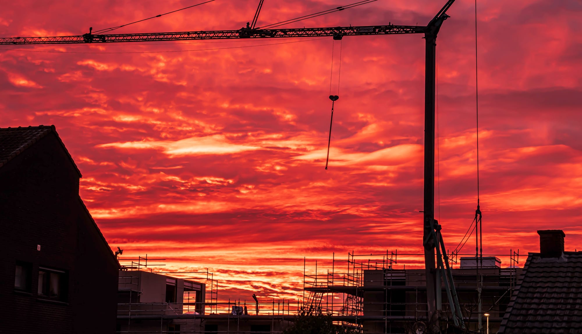 Terwijl de lucht in vuur en vlam staat, bouwt de mens rustig verder. Een mooi reeksje foto's alweer van Jan Thomas...