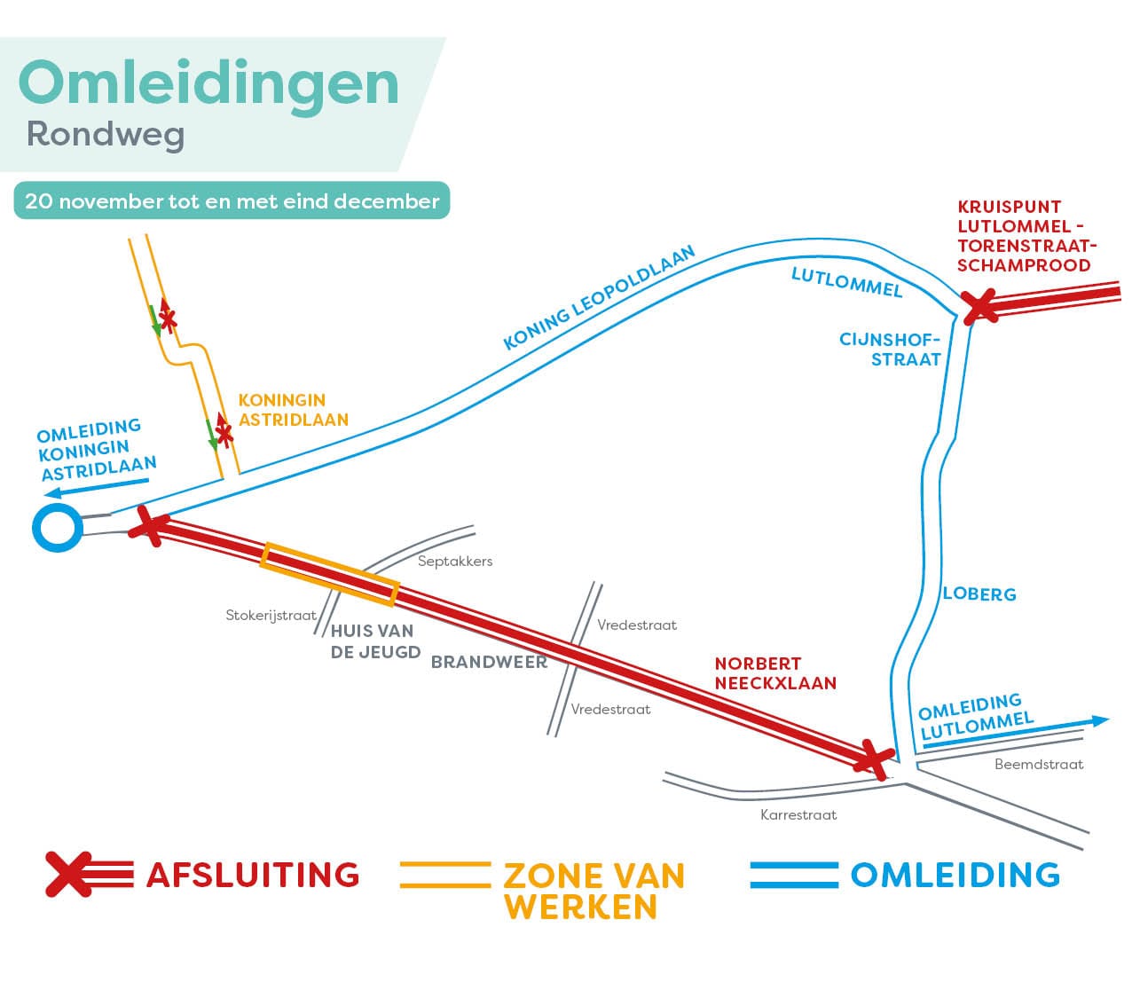 De omleiding zou nog duren tot eind december... Zie ook tekening onderaan.