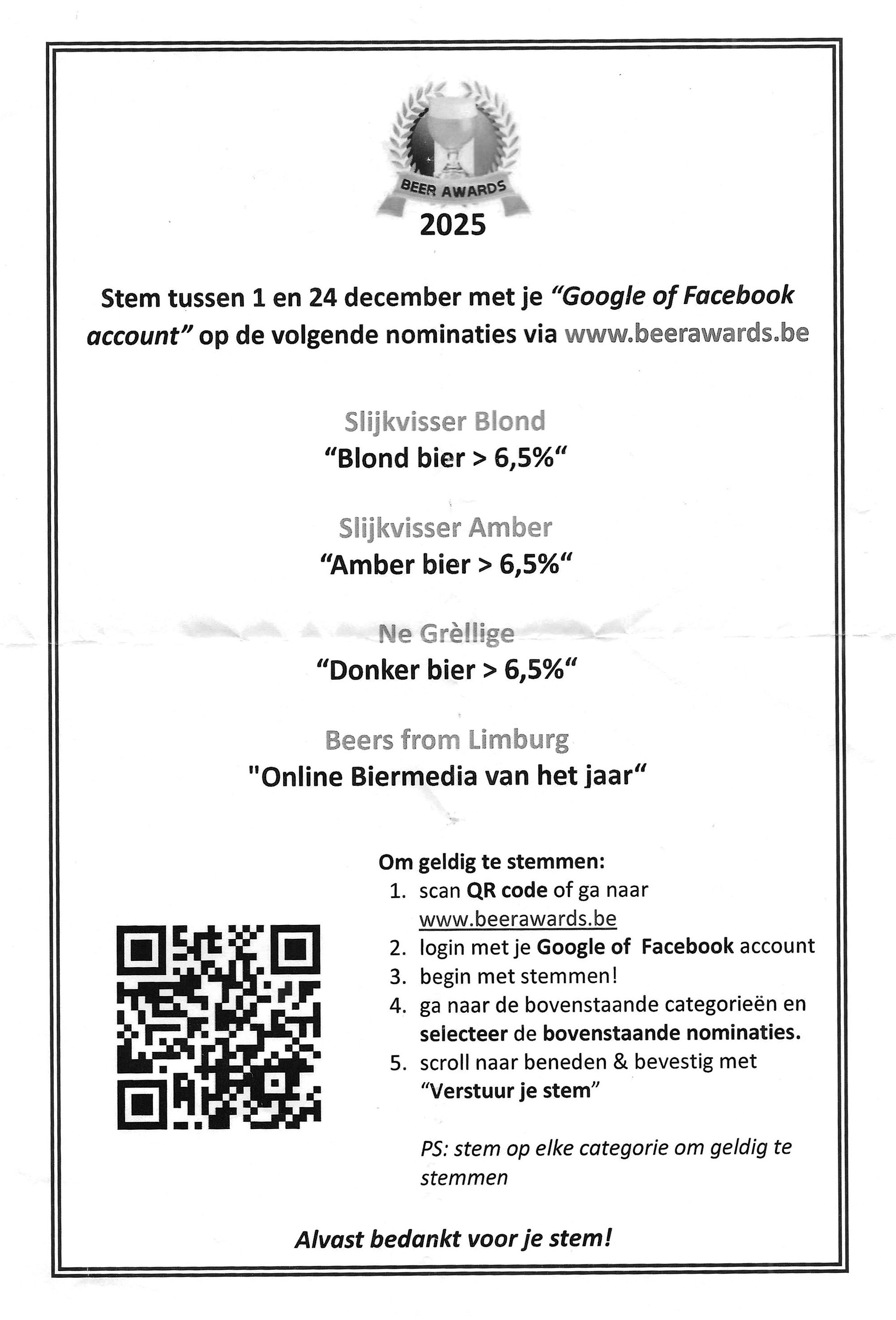En... binnenkort worden weer de 'Beer Awards' uitgereikt, en daarvoor kan je ook voor brouwerij Vandijck stemmen... Doe dit via onderstaande formulier: