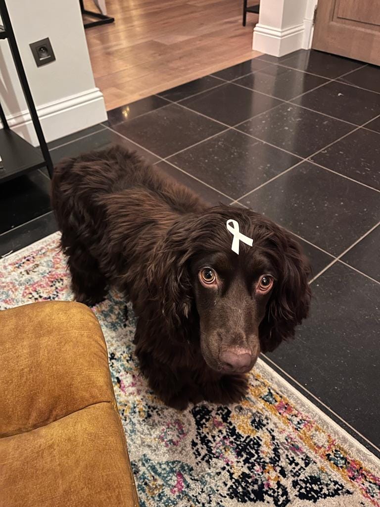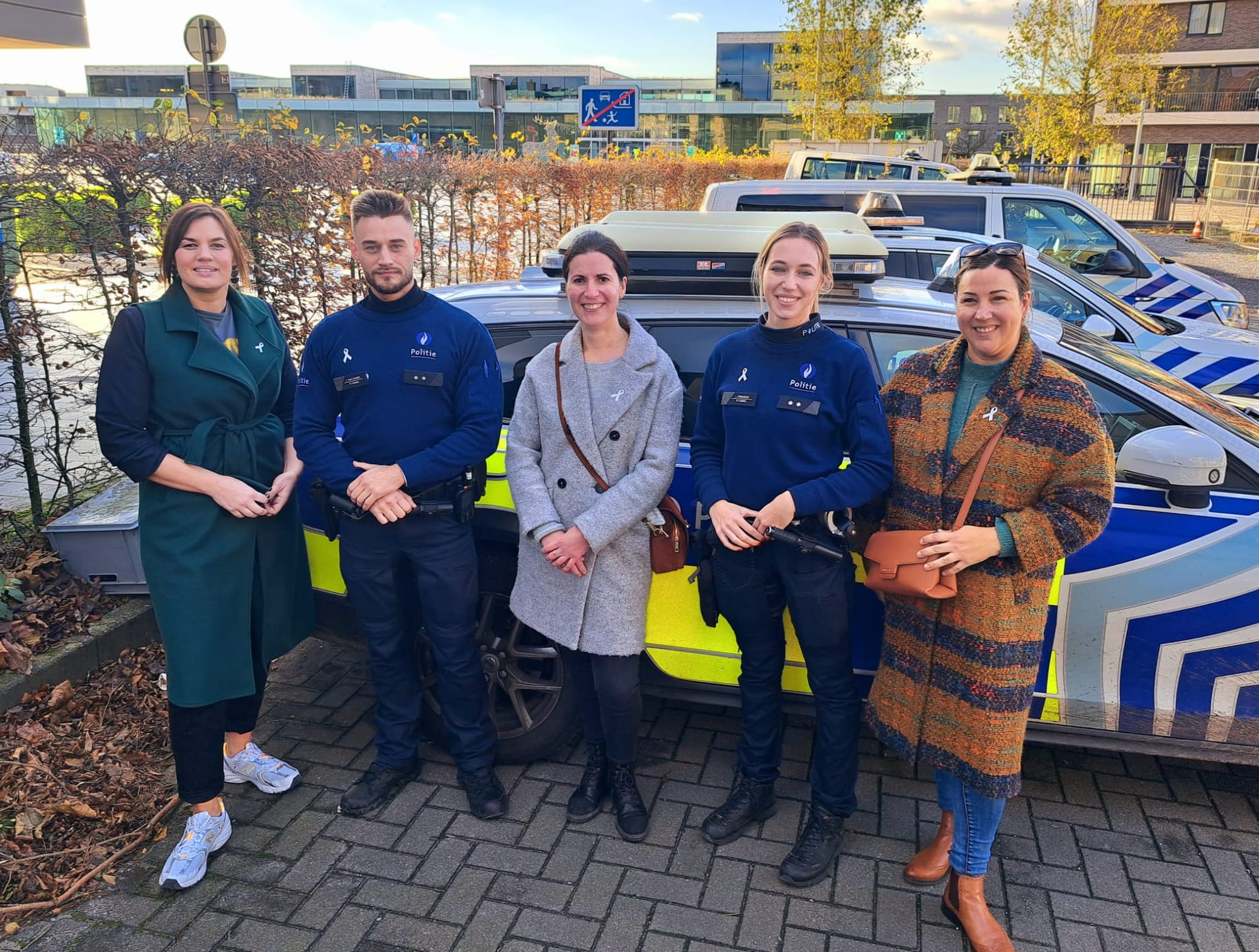 Om hun actie extra te ondersteunen ging de organisatie vandaag langs bij de lokale politie Lommel, Bibliotheek Lommel en Akindo VZW met hun witte lintjes en flyers. Ook lieve hond Senna steunt hun actie.
