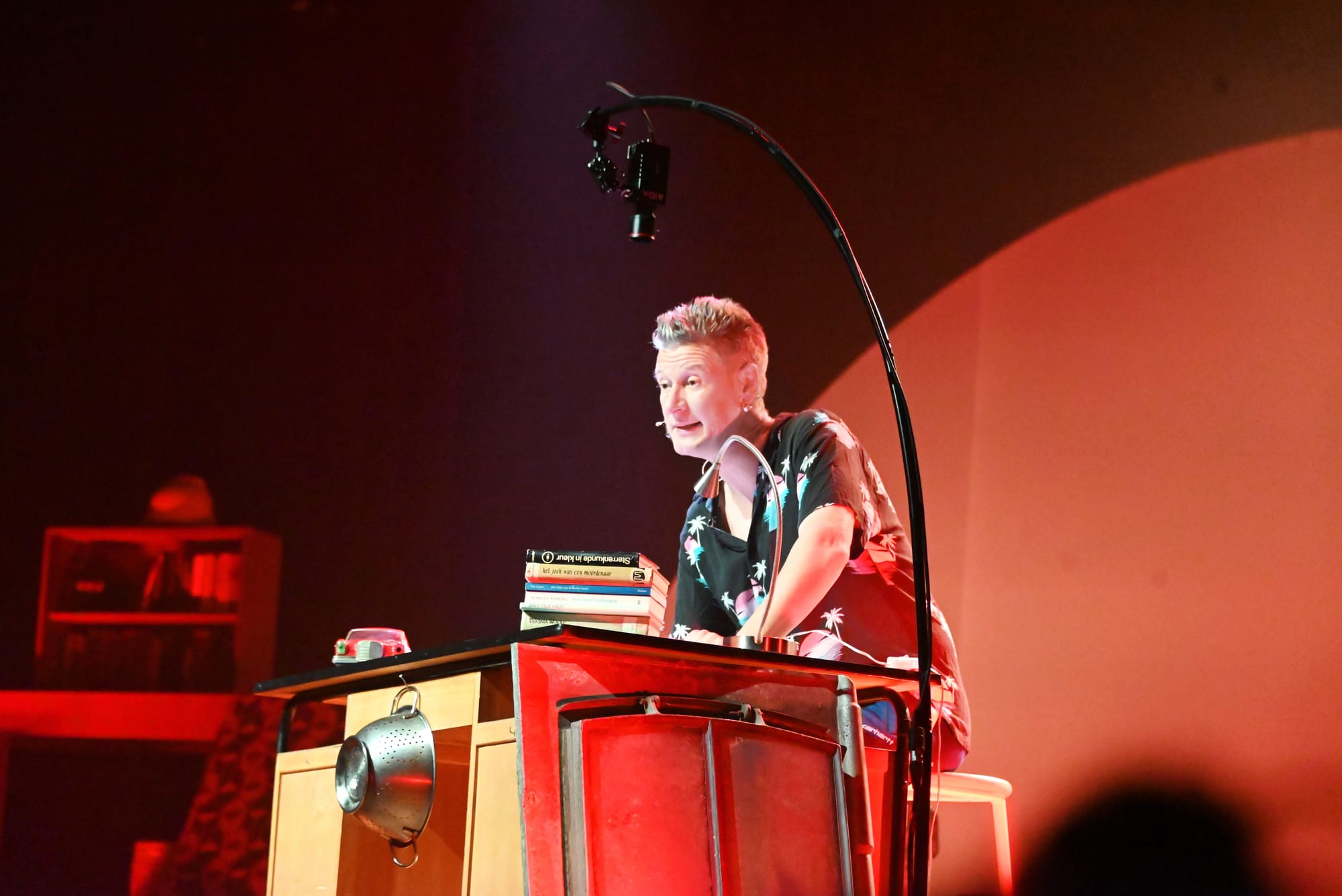 Hij is al jarenlang een graag geziene gast in cultuurcentrum De Adelberg, maar nu was het toch alweer vier jaar geleden dat hij hier op het podium stond, toen met zijn show 'Speech'. Maar gisterenavond was 'ie er weer, en als vanouds wist hij de hele zaal aan het lachen te krijgen met zijn gloednieuwe show 'Wouter moet meer orde hebben'. En zoals steeds bij Wouter Deprez, is het niet de ganse avond evenveel lachen geblazen... ook ernst en serieux komen af en toe om de hoek kijken. En de combinatie daarvan, dat maakt nu net Wouter tot de comedian die hij is!