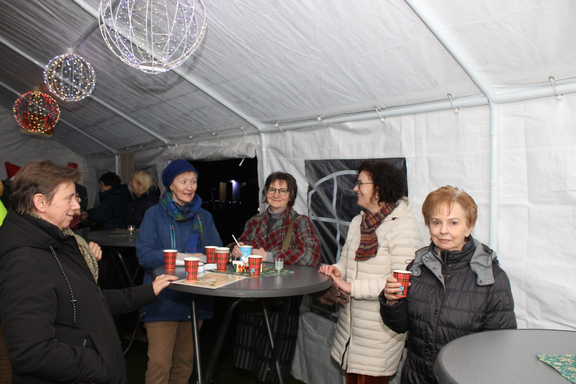 Bewoners én familieleden gingen vanavond 'op wandel' in ons mooi verlichte centrum. Ze vertrokken vanuit het woonzorgcentrum en gingen zo via het Dorp en de Kerkstraat tot aan de kerststal op het Kerkplein, en daarna weer terug naar 'huis'. Daar wachtte een heerlijke borrel én een