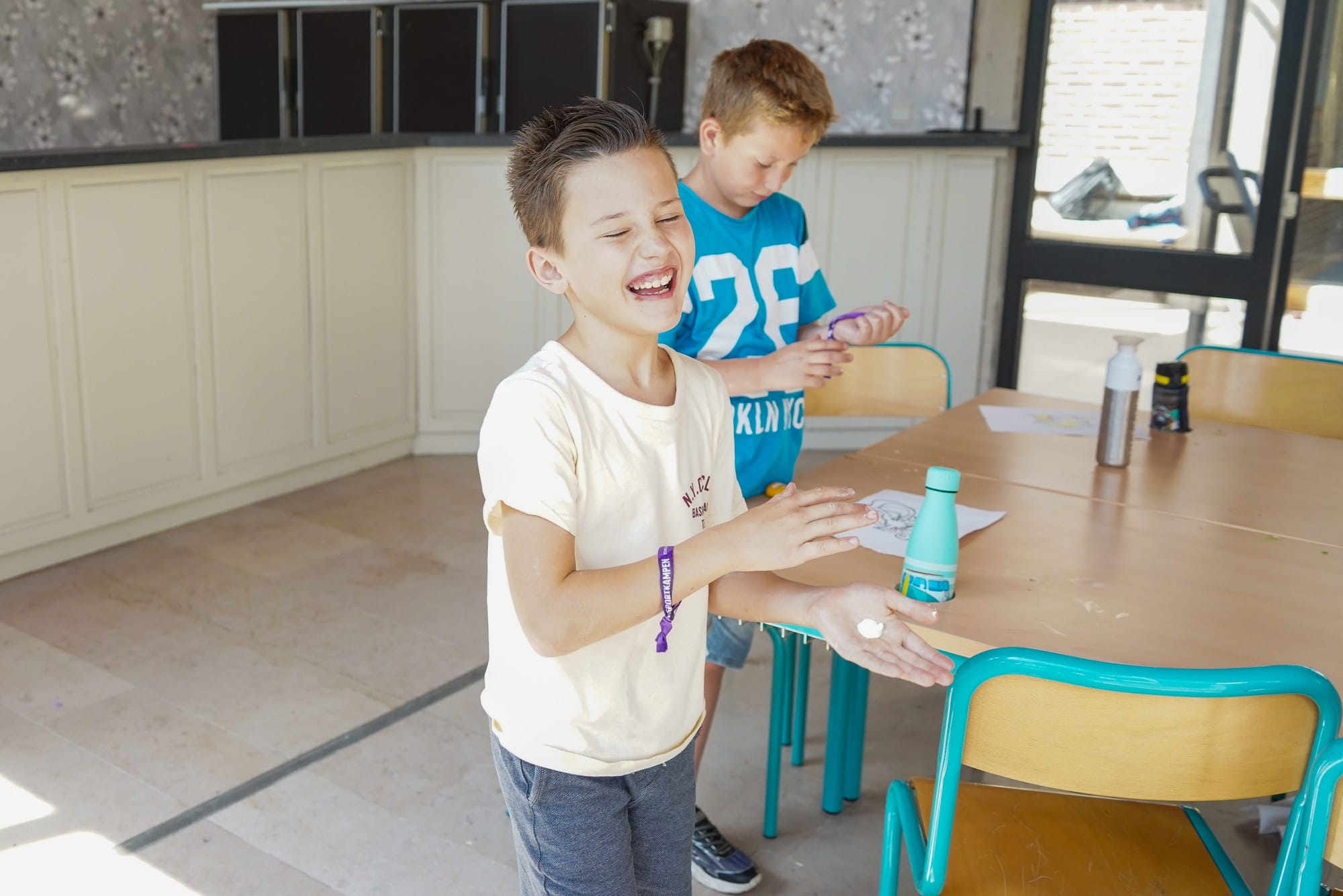 Afgelopen week vond er een Yes-kamp plaats voor kinderen van 3 tot 9. Het klinkt niet alleen als een heerlijk kamp voor jonge kinderen, het is het ook! Hoe leuk dat Luca en Demian bv. elkaar daar hebben leren kennen! Kampen kunnen echt magische plekken zijn voor nieuwe vriendschappen, je ziet het al meteen aan hoe ze nu nog meer samen willen doen. Samen buiten spelletjes doen en binnen knutselen...