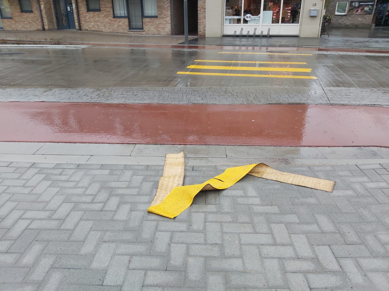 Op het nieuwe, pas aangelegde kruispunt op Lutlommel, is het zebrapad blijkbaar niet tevreden... Het wil er vertrekken 😄