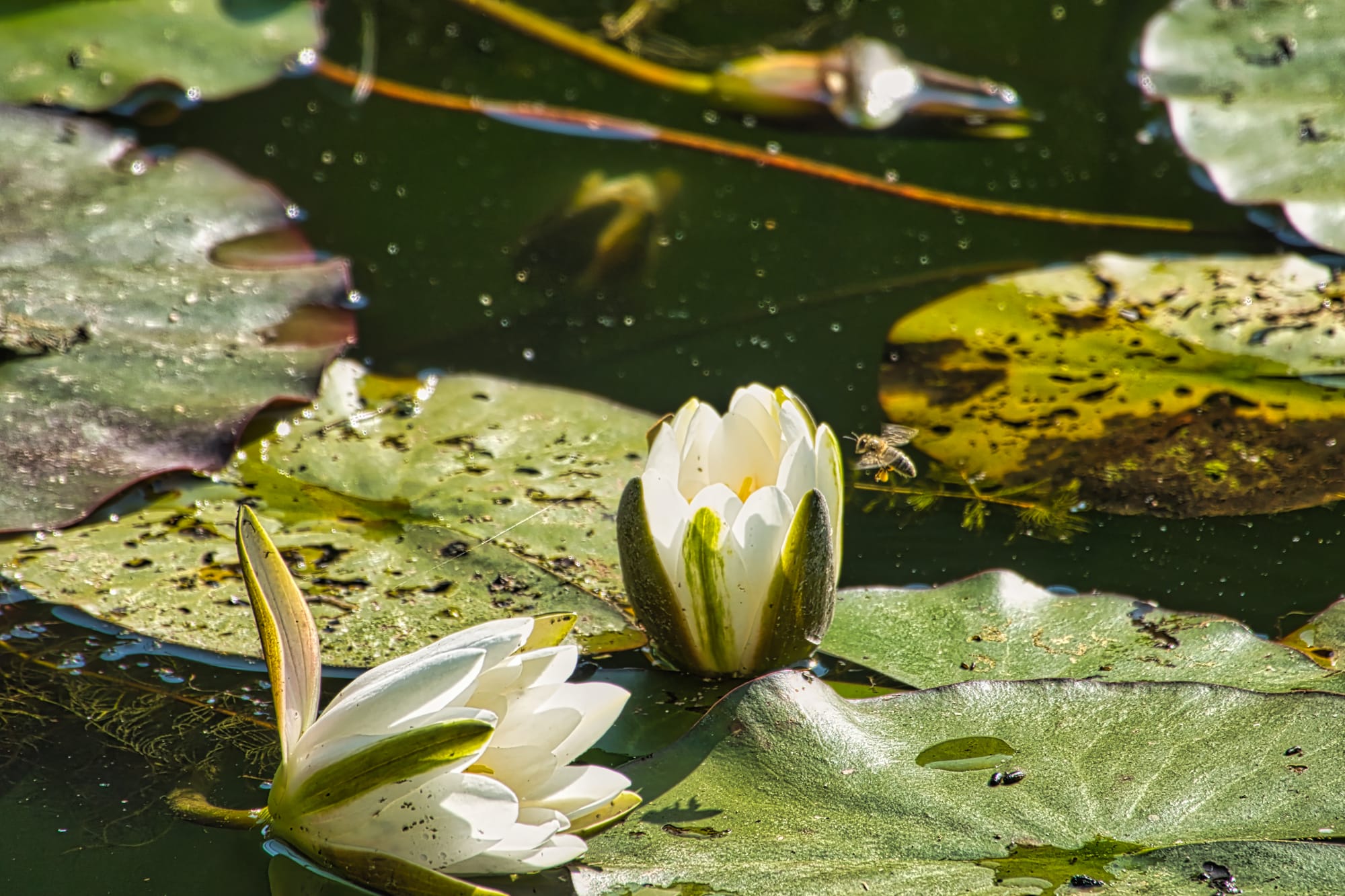 In de luwte van de middag waar de zon als goud neervalt, drijven waterlelies. De lucht trilt van hitte, 30 graden stilte breekt enkel door het zachte zoemen van bijtjes die dansen boven de lelies...